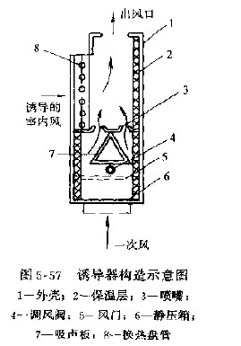 图5--56为诱导式空调系统图式,诱导器的构造见图5--57,主要由静压箱、喷嘴、盘管、调节风阀、壳体等组成。
