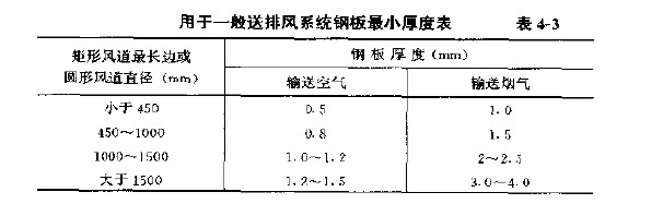 用于一般送排风系统时,当设计未标注钢板厚度时,可参照表4---3选择。