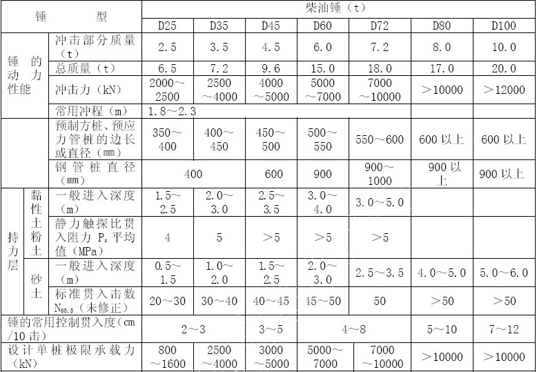 2 本表适用于桩端进入硬土层一定深度的长度为20~60m 的钢筋混凝土预制桩及长度为40~60m 的钢管桩。