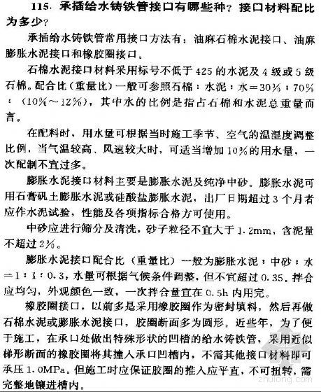 承插给水铸铁管接口有哪些种接口材料配比为多少