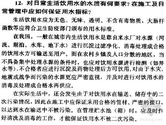对日常生活饮用水的水质有何要求在施工及日常管理中应如何保证用水指标