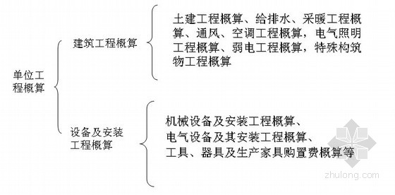 单位工程概算是确定各单位工程建设费用的文件,是编制单项工程综合概算的依据,也是单项工程综合概算的组成部分。单位工程概算按其性质分为建筑工程概算和设备及安装工程概算两大类。建筑工程概算包括土建工程概算,给排水、采暖工程概算,通风、空调工程概算,电气照明工程概算,弱电工程概算,特殊构筑物工程概算等;设备及安装工程概算包括机械设备及安装工程概算,电气设备及安装工程概算等,以及工具、器具及生产家具购置费概算等。