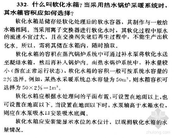 什么叫软化水箱当采用热水锅炉采暖系统时,其水箱容积应如何选择