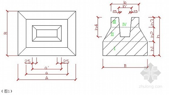 杯形基础混凝土工程量的计算方式与锥形独立基础相类似,一般可以将杯形基础分为(如图中)底部立方体VⅠ、中部棱台体VⅡ和上部立方体VⅢ。然后将三个部分体积相加后,再减去杯口的虚空体积VⅣ。