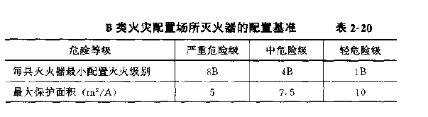 (2)B类火灾配置场所灭火器的配置基准应符合表2一20的规定。