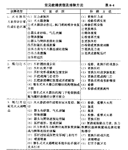 灭火器常见故障类型,可能原因以及排除方法见表8一4