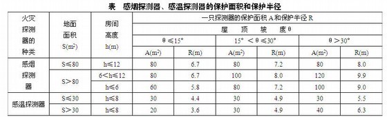 1.2感烟探测器、感温探测器的保护面积和保护半径,应按下表确定。