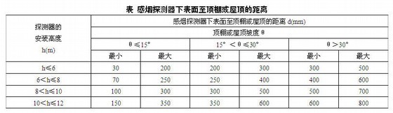 1.11当屋顶有热屏障时,感烟探测器下表面至顶棚或屋顶的距离,应符合下表的规定。