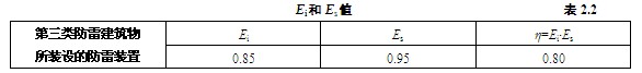 根据IEC-TC81的有关资料,第三类防雷建筑物所装设的防雷装置的有关值见表2.2。