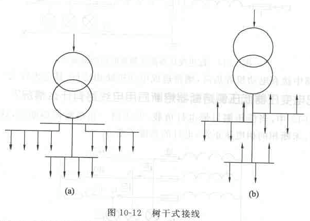 放射式接线如图10--11所示,其特点是引出线发生故障时互不影响供电可靠性高。但在一般情况下,金属消耗量大,使用开关设备较多,该接线适用于设备容量大或负荷性质重要、潮湿及腐蚀性环境的车间。