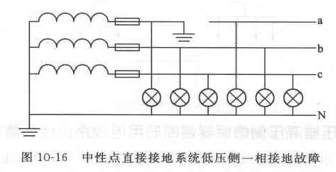 答:图10--16中,中性点直接接地系统中a相接地,此时,a相电源经过大地构成回路接地点有较大的短路电流流过,a相灯熄灭。