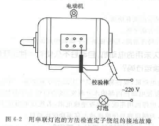 答:所谓绕组接地.是指绕组与机壳直接接通使机壳带电.又称碰壳或漏电。检查绕组接地故障可采用万用表〔电阻档)或绝缘电阻表按图6--1的方法逐相进行也可按图6--2串联灯泡的方法逐相进行。