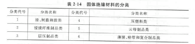 答:电工绝缘材料分为气体、液体和固体三大类。固体绝缘材料按其应用或工艺特征又可分为6类,见表2--14