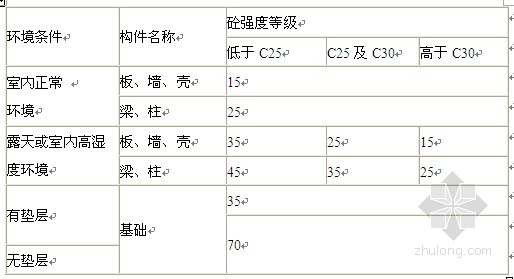 注:(1)轻骨料砼的钢筋的保护层厚度应符合国家现行标准《轻骨料砼结构设计规程》。