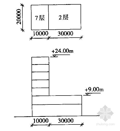 檐高9m,2层为现浇框架商场