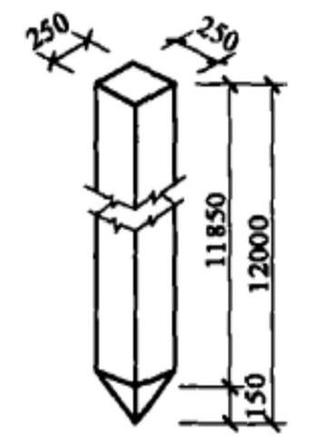 【例】某单位工程采用钢筋混凝土方桩基础,三类土,用柴油打桩机打预制钢筋混凝土方桩160根,根据图计算打方桩工程量和定额直接费。