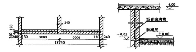 沥青玻璃棉隔热=(18.74-0.243)4.050.05m=3.65m