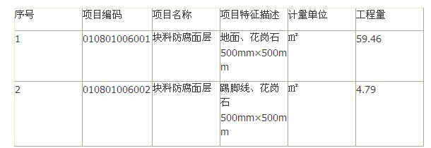 【例】如图所示,计算500mm500mm花岗石地面和150mm高花岗石踢脚板的工程量(门口满铺花岗石)。