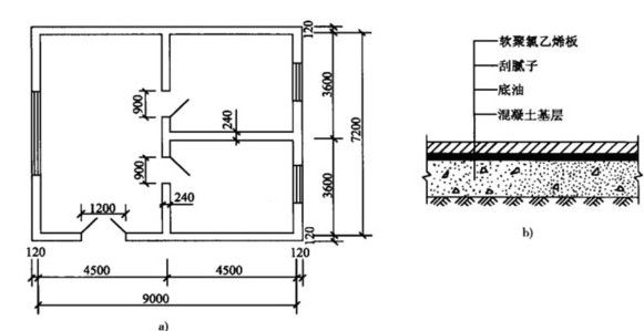 图某地板示意图 a)平面图b)地板做法图