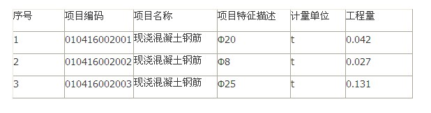 清单工程量见表。