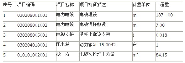 (l)电缆埋设:[2.28(备用长)+80+60+40+5+2.28+20.8(埋深)+0.4(箱距地高)+(1.7+0.7)(箱宽+高)]m=193.96m