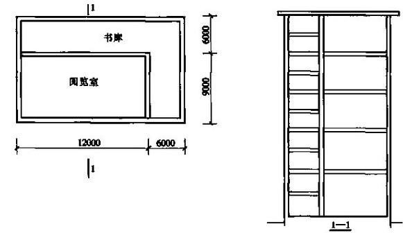 【解】图书馆书库建筑面积:F=[69+6(12+6)]10 m2=1620 m2