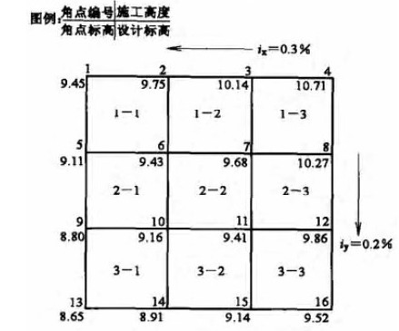 (3)计算各角点的施工高度: