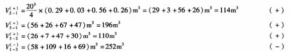 (5)计算各方格土方工程量(以(+)为填方,(-)为挖方):