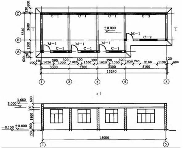 某建筑物示意图 a )平面图 b ) 剖面图