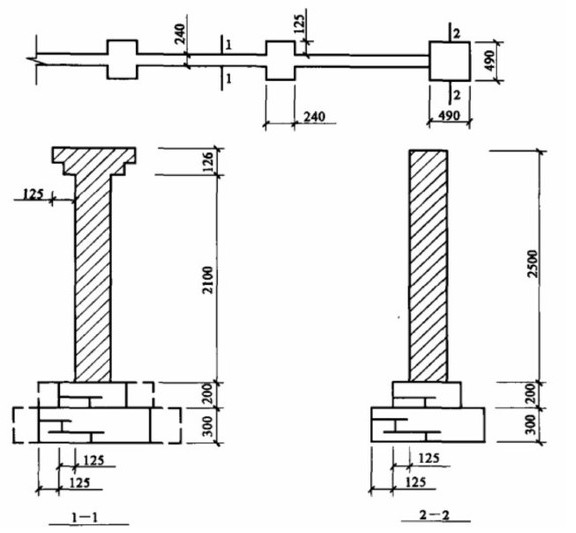 【例】如图所示,已知墙身及毛石基础均用M5混合砂浆砌筑,围墙总长为1800m(扣除门宽及门垛),每6m一个附墙垛,求围墙工程量。