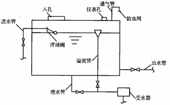 消防水箱:消防用的给水设备,对扑救初期火灾起着非常重要的作用,一般置于建筑物顶楼或地下室,当置于地下室时,使用消防水泵维持管路中的正常压力。消防水箱宜与生活、生产用水合用水箱,但应保证水箱内水的质量不受消防管网中水的污染。