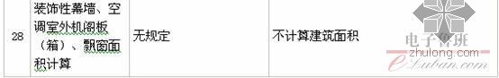 28.突出外墙的装饰性部分,不计算建筑面积,如:墙面抹灰、装饰面层、装饰性幕墙、装饰性阳台、挑廊等。
