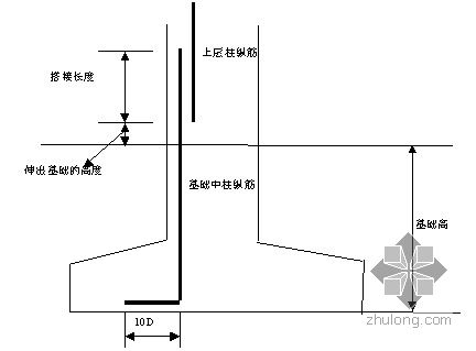 基础插筋=基础底板厚度-保护层+伸入上层的钢筋长度+Max{10D,200mm}
