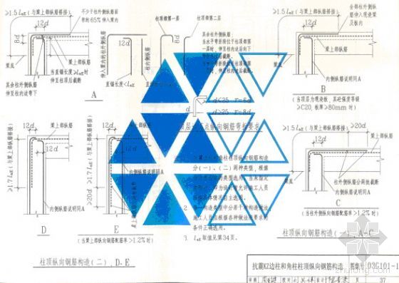 顶层KZ因其所处位置不同,分为角柱、边柱和中柱,也因此各种柱纵筋的顶层锚固各不相同。(参看03G101-1第37、38页)