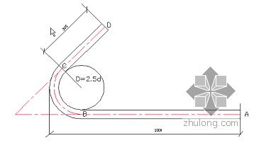 我们软件中箍筋计算时取的11.9D实际上是弯钩加上量度差值的结果,我们知道弯钩平直段长度是10D,那么量度差值应该是1.9D,下面我们推导一下1.9D这个量度差值的来历: