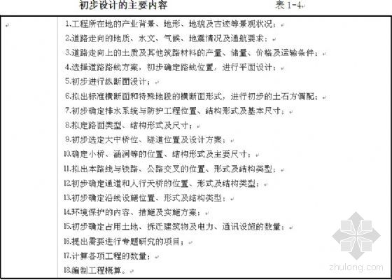 表1-4列出了初步设计的主要内容,供设计时参考。