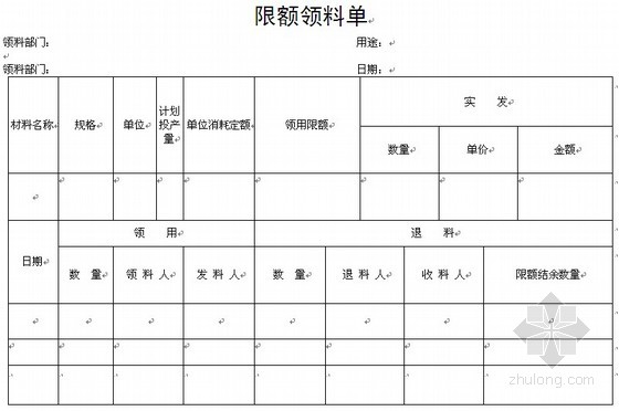 限额领料单范本