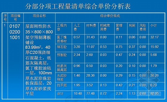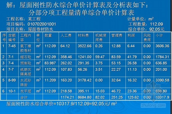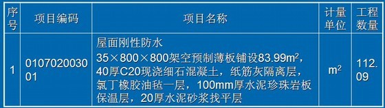 例:某屋面刚性防水清单如下所示: