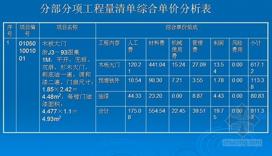 ④木板大门项目综合单价计算及分析表如下: