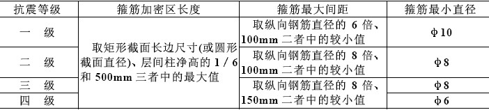注:1 对二级抗露等级的框架柱,当箍筋最小直径不小于10时。其箍筋最大间距可取150mm