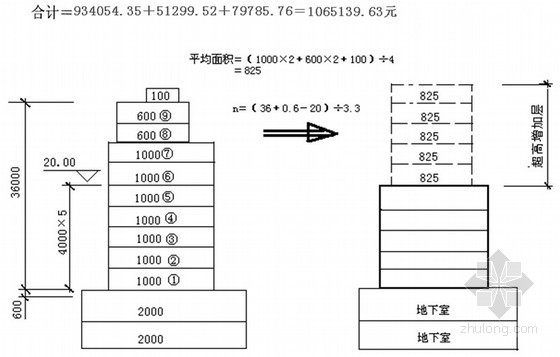其中:超高折算层层数=(H-20)3.3余数不计,此数为虚拟折算层数。