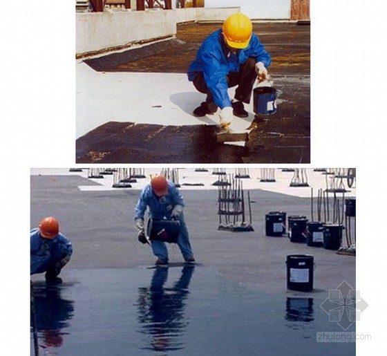 ①涂膜组成:防水涂料结成的薄膜,在涂膜中间夹铺纤维布(无纺布、玻纤布)以加强涂膜的整体抗裂性,又叫胎布。每两层胎布之间的涂膜叫做一个涂层,涂膜由涂层和胎布叠合组成。涂膜无胎布时,即为一个涂层组成。