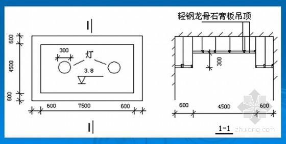 某工程天棚平面如图8-4,设计为U38不上人型轻钢龙骨石膏板吊顶,龙骨网格350350。计算天棚装饰费用。