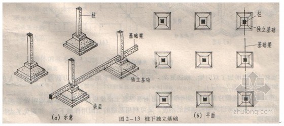 基础梁:两端支承在独立柱基頂面,梁底托空,以承受上部墙体荷载,起着墙体基础作用的梁。