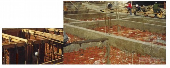 通常先把柱两侧砖墙砌成马牙槎形状,内外两面支模板后,再浇混凝土。