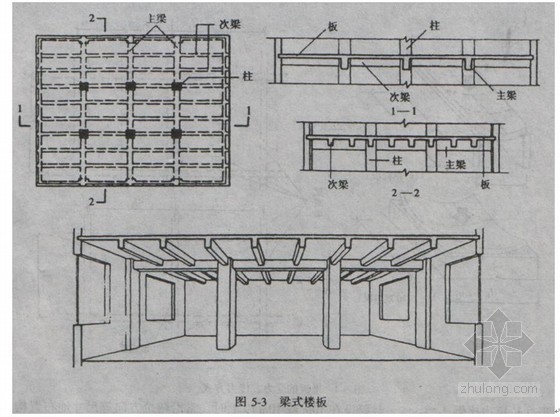 有梁板:指梁(含主梁、次梁)與板浇注成整體的楼板结构体系,梁和板的总称。