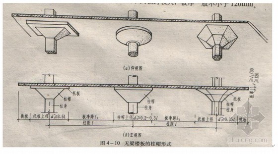 无梁板:指直接支承在柱帽上而没有梁的楼板结构体系,板与柱帽的总称。