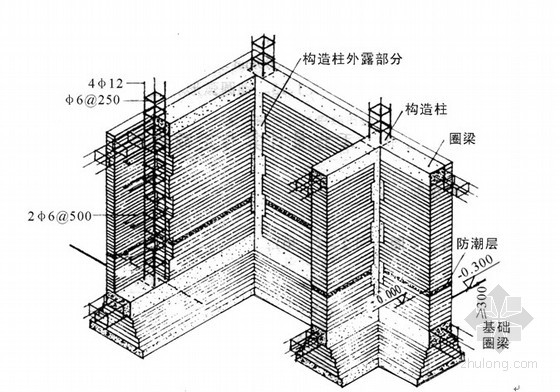 构造柱:为增加房屋整体稳定性,在内外转角处或相接处,沿墙高度方向从基础到屋顶浇注在墙中的柱子。
