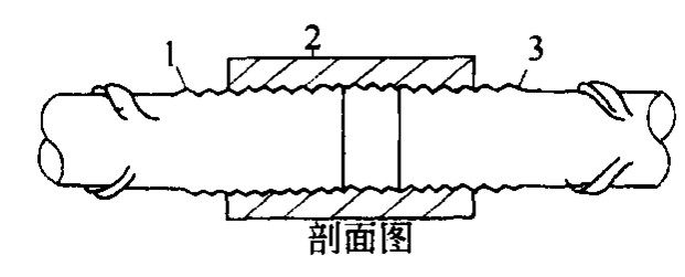 1-已连接的钢筋;2-直螺纹套筒;3-正在拧入的钢筋