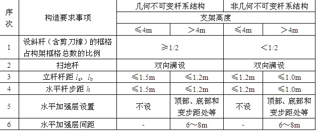 2.非几何不可变杆系结构的剪刀撑和斜杆设置不低于相应脚手架的构造规定;